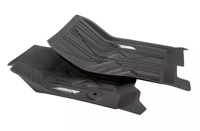 - Description: From the brand that knows your vehicle best, these GMC Accessories Premium All-Weather Floor Liners have been precision engineered to meet the exact fit and appearance standards of your interior. Unlike most conventional all-weather floor mats or rubber mats, these Floor Liners incorporate a 3-dimensional design specifically developed for your vehicle to help ensure maximum carpet coverage and provide a barrier to help keep messes contained. Molded grooves help channel debris, snow, mud and water away from the vehicles carpeting, as well as your feet and clothing. Sold as a pair of floor liners for the first row of your vehicle, they can cover previous wear of interior floors and help protect against future wear from everyday use. The Floor Liners feature the AT4X logo, push-and-click fasteners and high-friction backing with a retention system. Includes two floor liners, one for driver side and one for front-passenger side.